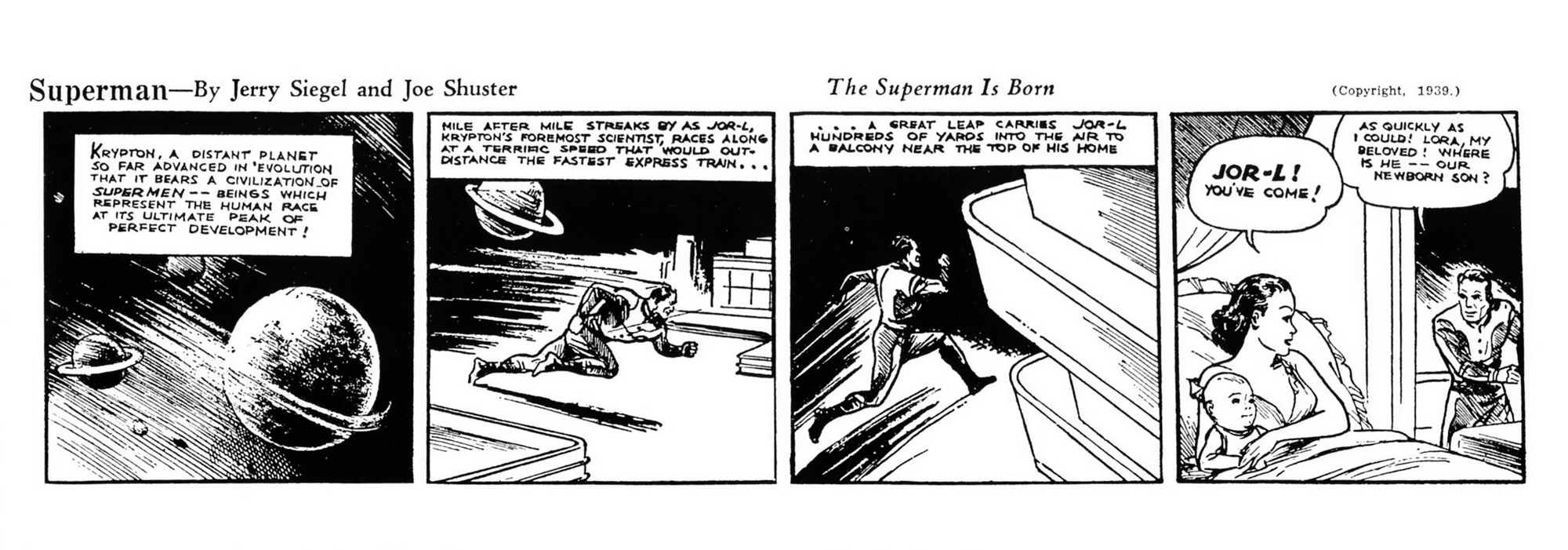 Printed daily, they were the first stories to go into detail about the planet Krypton, exploring the story of superman's parents, Jor-El and Lara.