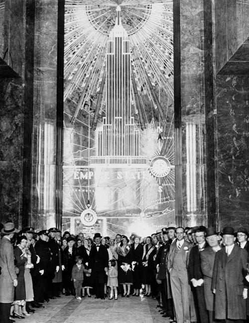 The Empire State Building in New York City was dedicated by President Hoover from the White House in Washington DC where he pressed a button that switched on the lights. The 102 story skyscraper, at the corner of Fifth Avenue and 34th Street in New York City, was the first higher than 1,250 feet. (I can see it just down the street from my office.)