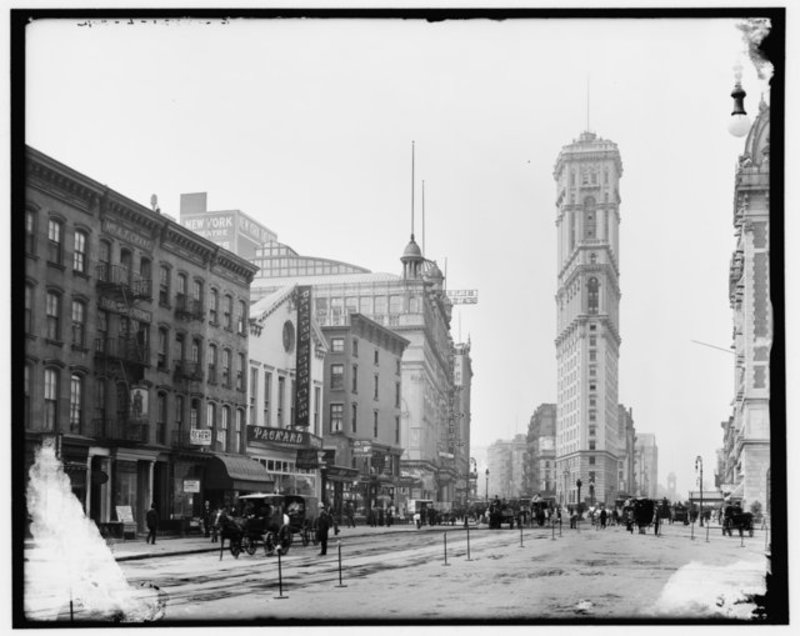 New York Times publisher Adolph S. Ochs was preparing to move the newspaper's operations to a new skyscraper on 42nd Street at Longacre Square, hence Times Square.
