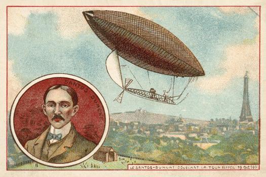 Alberto Santos-Dumont successfully circled the Eiffel Tower in his Santos-Dumont No. 6 dirigible within a half hour and won a 100,000 franc prize.